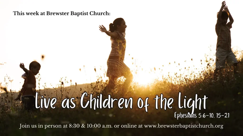 This week in worship Pastor Doug continues our series on Ephesians, sharing about how we should “Live as Children of the Light” from Ephesians 5:6-10, 15-21 “Live as children of light— for the fruit of the light is found in all that is good and right and true.” ~Ephesians 5:8b-9 Watch our preview –