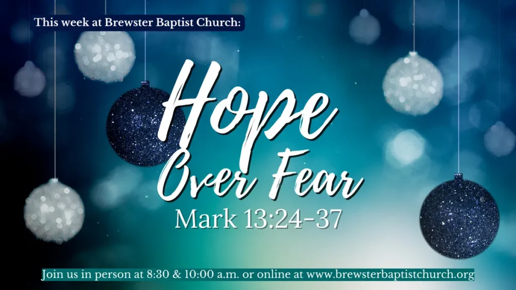 This Sunday, we begin our Advent series, “Fear Not.” Pastor Doug will begin with “Hope Over Fear” from Mark 13:24-37. Heaven and earth will pass away, but my words will not pass away. ~ Mark 13:31 Watch our preview –