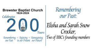 Two of the founding members of Brewster Baptist Church were husband and wife, Elisha and Sarah (Snow) Crocker. Elisha Walter Crocker was born on April…