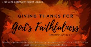 This week in worship, Pastor Doug and his wife Jill will be sharing together about being thankful for God’s faithfulness and how God has shown His faithfulness through BBC these last 25 years.