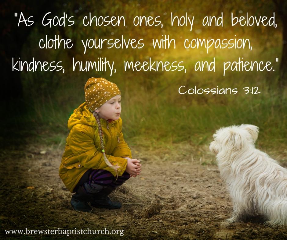 “As God’s chosen ones, holy and beloved, clothe yourselves with compassion, kindness, humility, meekness, and patience.”